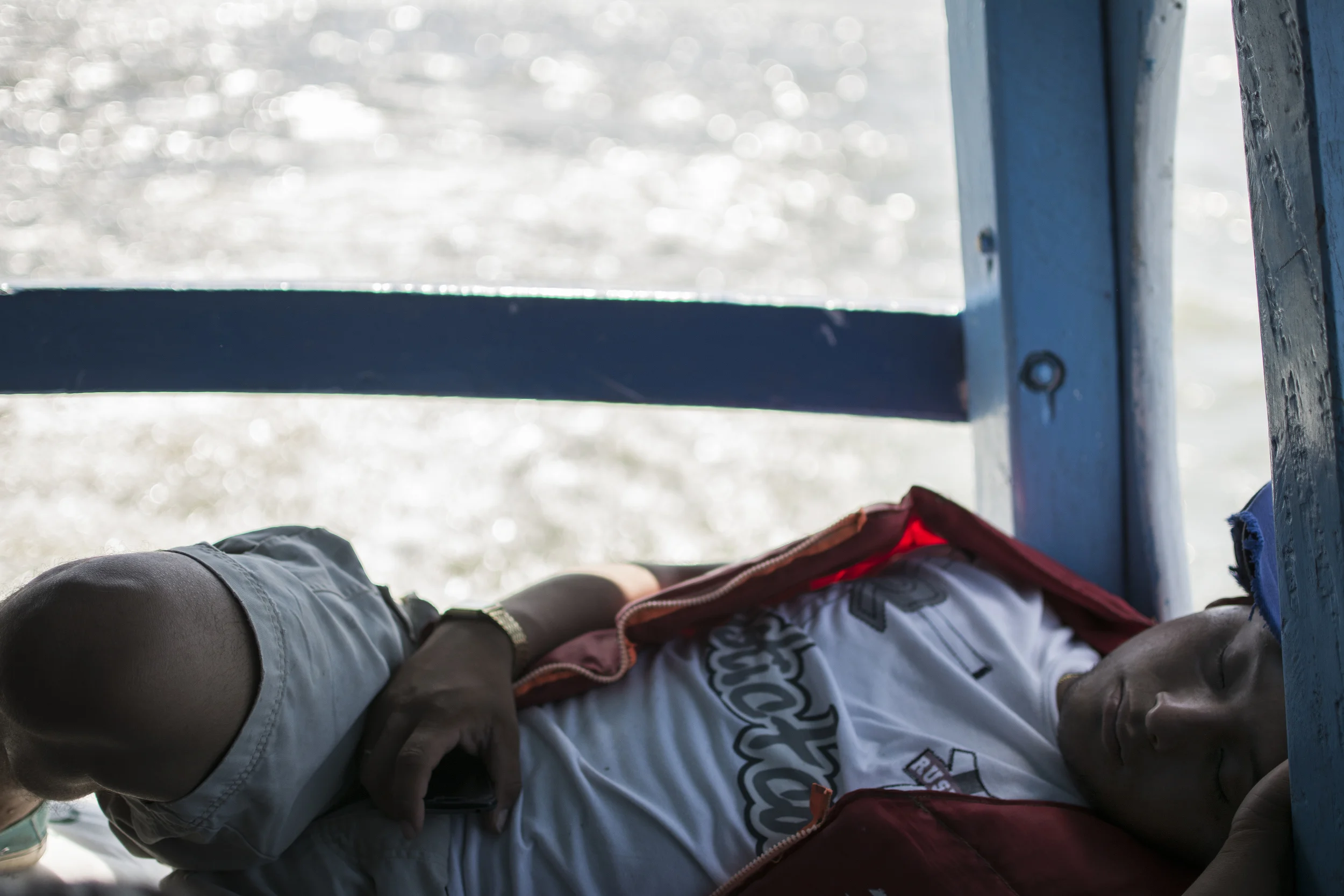 Most people on the Karen Maria were tired, like this guy. Here he is thinking, "I can't get wifi out here on Lake Nicaragua because the bull sharks are eating it all, so I might as well try to sleep."