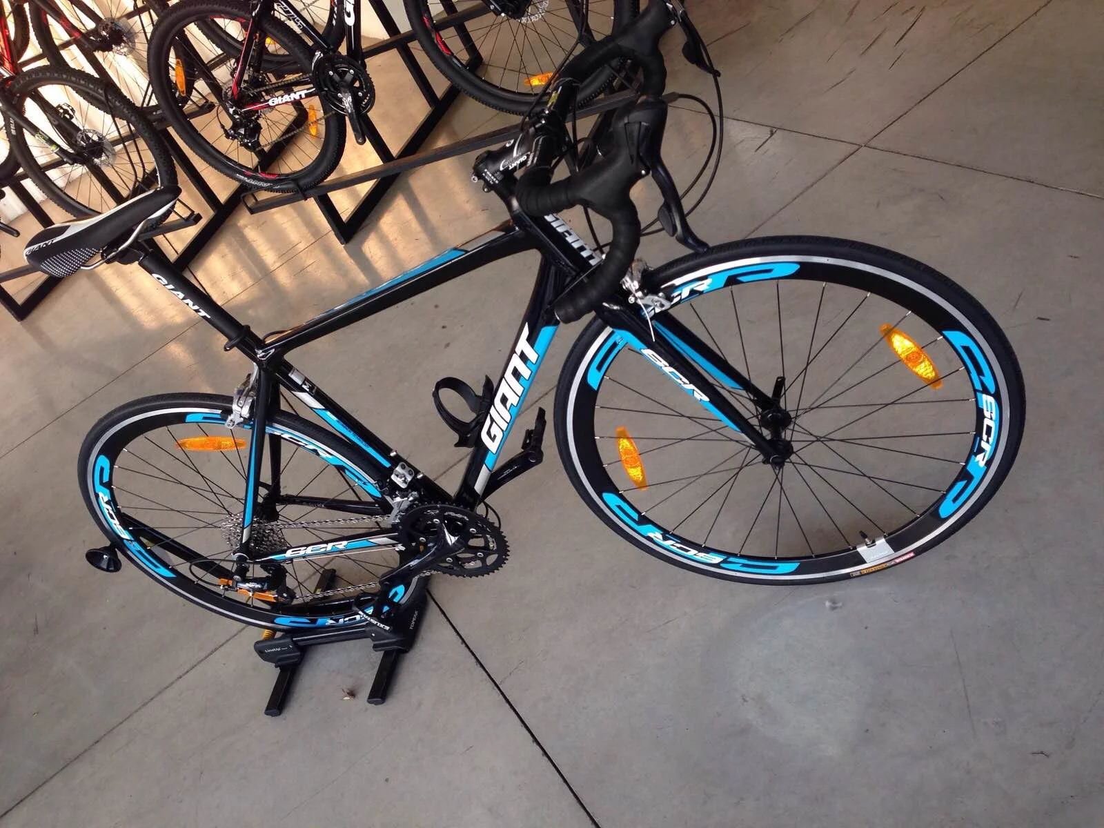 You can see that it looks like it goes super fast, which it does. Also, you can see how it looks like it has blue accents, which it does. I bought color coordinated tight lycra to wear with my fast bike. I admit that I've spent much of the past 35 years mocking guys in super tight lycra riding road bikes. But one thing about me is that I'm perfectly cool with changing my position to match everyone else's. I tell my kids, I tell them: "Don't just go along with crowd, guys. Unless the crowd is doing something awesome, then go along with it." So the guys at work all wear tight clothes and ride road bikes, so I went to a bike shop and I'm like, "What have you got that is lycra and super tight." And they were all, "Here, we have this." And I go, "I'll take two."