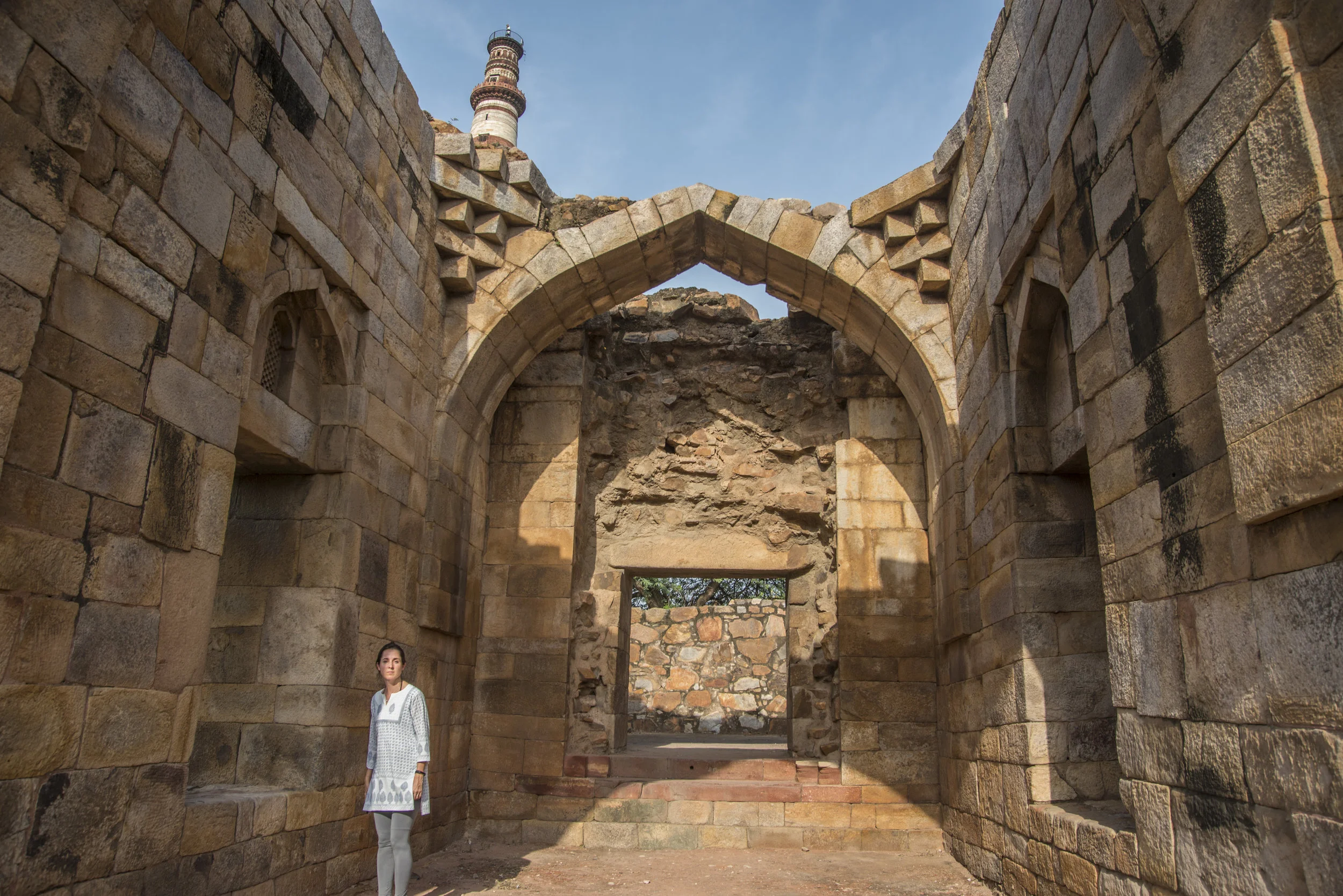 So when we had a free Saturday afternoon recently, Shannon and I decided to ditch the kids and go tourist-ing ourselves. The kids thought this a great idea, saluted our parenting prowess, and urged us to stay gone as long as we liked. We went to Qutb Minar, a large complex of ruins not far from our flat, crowned by a 237-foot minar, or tower, built of red sandstone and marble, and etched with exquisite Arabic calligraphy, largely Koranic. The tower was built between the 12th and 14th centuries, and several other ruined/partially-restored structures -- including a mosque, a Sufi tomb, and a madrasa -- fill out the complex.