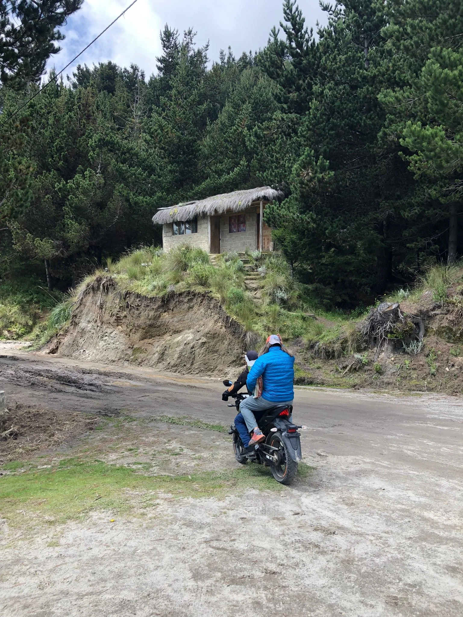 I am on the back of a small, plastic motorcycle on a dirt road twisting through the Andes mountains as they violently shove the middle of this little country, Ecuador, miles into the sky. A car battery is cradled in my left arm, my right is wrapped tightly around the driver. I have known him for twelve minutes. He has only one hand. I am trying to remember whether he is missing the clutch hand or the brake hand. I am wondering which is worse.