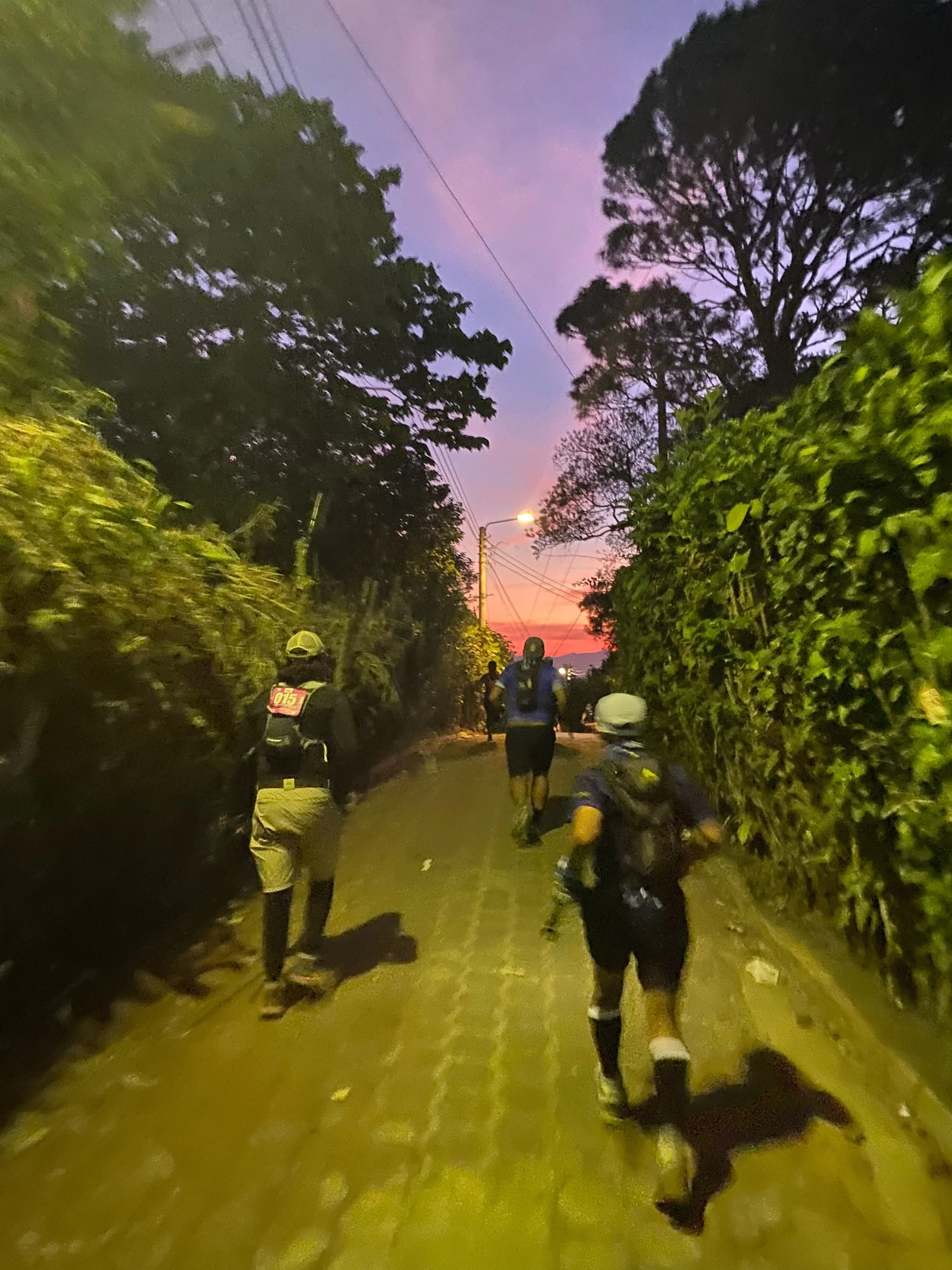 I reached Apaneca after 19 miles and almost 6,000 feet of climbing. The sun was high. It was about 90 degrees outside. I swore I was in last place. A 1,500 foot volcano loomed behind the town. The route climbed straight up it. Could I continue for another 12 miles and 2,000 feet of elevation gain? Probably. Would it take me another six hours? Likely. Would I finish with an otherworldly sense of elation that I had surpassed what I had believed to be the limits of my physical capabilities? Yeah. Was that a very persuasive thought at that moment? Nah. I sat down on a curb beside the aid station to rest. Pulled off my shoes and socks. My feet had been soaked in morning dew and sweat for hours. Skin was hanging off in ribbons. And it opened up my eyes. I saw the sign. So I quit. Sometimes you’ve got to stand up — or sit down — for yourself. No one’s gonna drag you up to get into the light where you belong.
