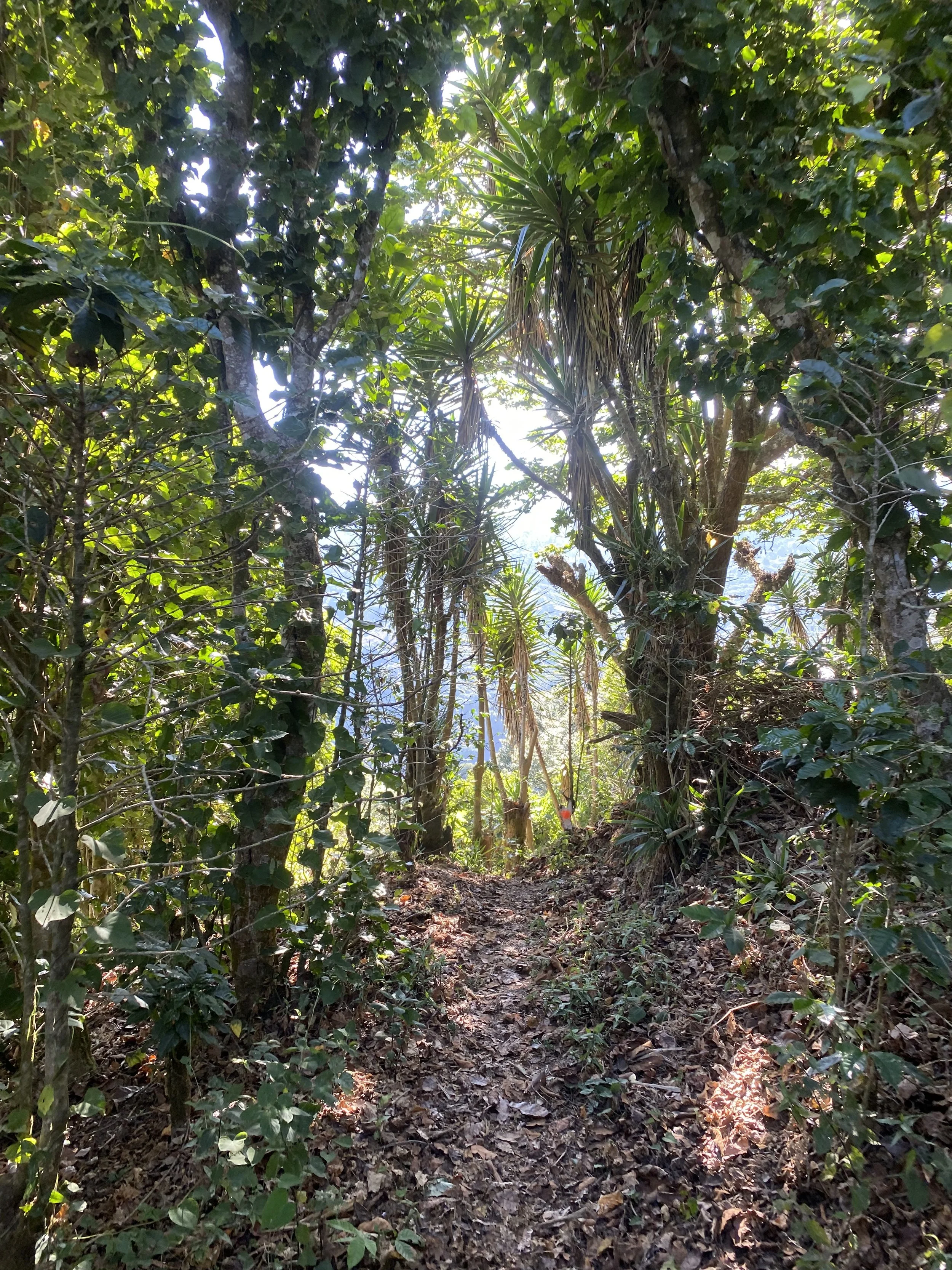 The course wended away from Ataco and into rugged coffee fincas. I felt tired. The sun rose. It got hot. I was miles from anything, climbing dumb mountains in clingy humidity. Occasionally I caught glimpses of a figure or two way ahead of me, and sometimes I heard footsteps far behind. But mostly it was just me, and grabby tree branches, and warm, wooly air, and cramps. I’d never got cramps before while running. I swallowed some salt tablets and whimpered. That helped.